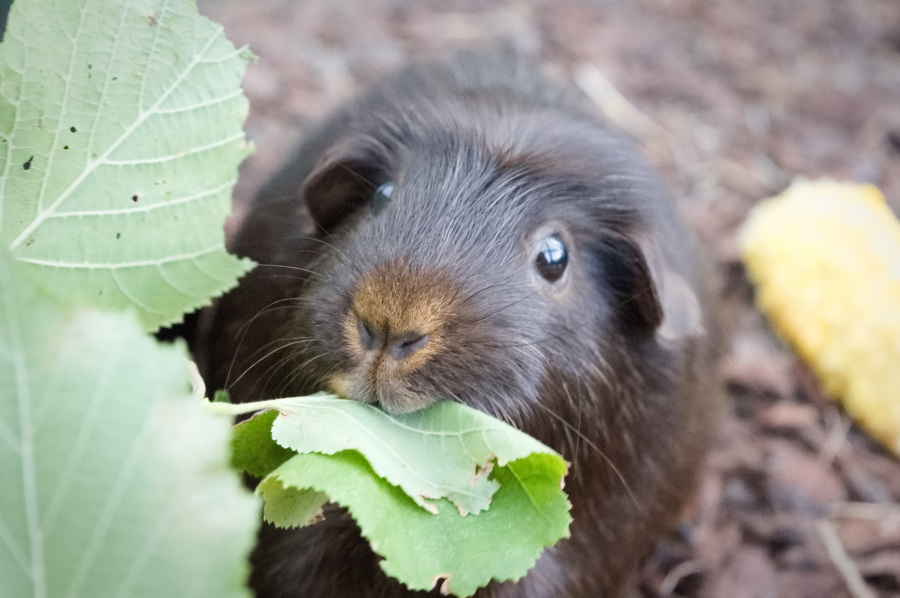 Unsere heutigen Meerschweinchen unterscheiden sich optisch mittlerweile sehr von ihren wilden Verwandten, ihre Verdauung allerdings funktioniert immer noch nach dem gleichen Prinzip. Meerschweinchen haben einen Stopfmagen, das heißt die Verdauung von Meerschweinchen funktioniert also nur, wenn sie ständig fressen. Ihre Zähne wachsen ein Lebenlang und sind auf einen ständigen Abrieb angewiesen. Hartes Brot und Semmeln sind allerdings völlig ungeeignet und schaden unseren Quiekern sehr!!! Heu, Zweige, Gehölz, etc.... reichen für einen gesunden zahnabrieb völlig aus.