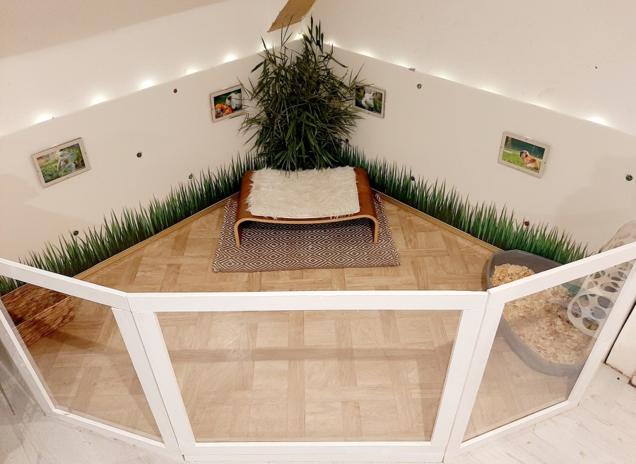 Kaninchen in Innenhaltung sollten mindestens 3-4m2 immer zur Verfügung haben, umso mehr, umso besser. Zusätzlicher Auslauf ist nötig, damit diese bewegungsfreudigen Tiere auch mal ordentlich Gas geben können.